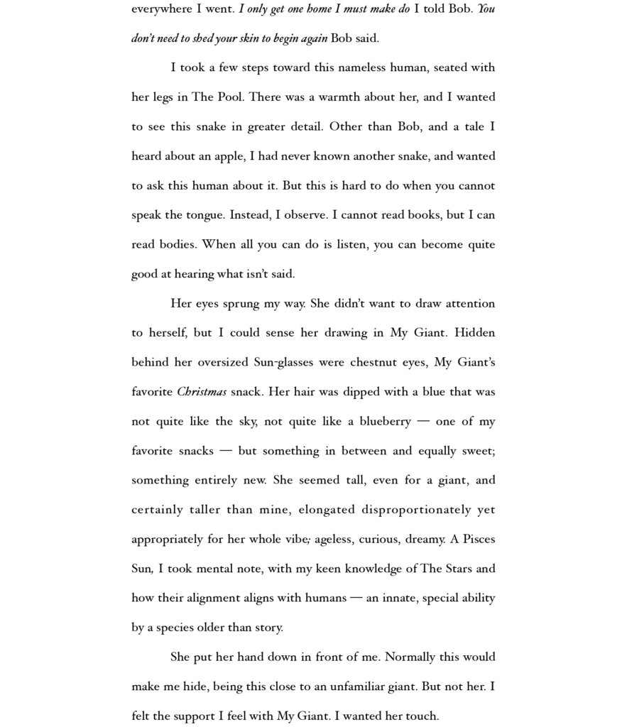 Adele Voyria (AV) is a Scottish-based author, poet, and screenwriter. They have been shortlisted for the Grierson Verse Prize and the ScreenCraft Comedy Competition. Their work can be found in Superlative and From Arthur’s Seat. AV is currently finishing their Creative Writing PhD at the University of Edinburgh.