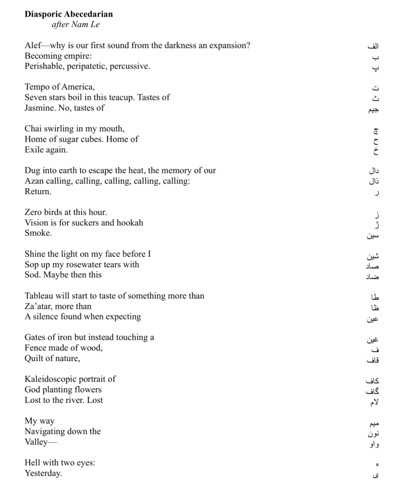 Katherine Irajpanah is a writer and postdoctoral fellow at Dartmouth College. Her poems have been published or are forthcoming in the Colorado Review, Peripheries, Only Poems, California Bards SoCal Anthology, and Driftwood Press Anthology. She is originally from Santa Monica, California.